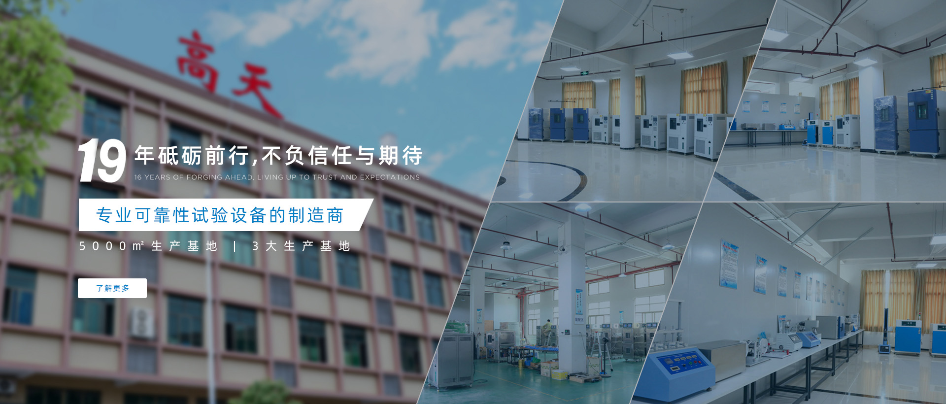 东莞市高天试验设备有限公司是一家可靠性试验设备的制造商,我们专注于可靠性试验已有19余年,在此期间,我们竭尽所能,努力为客户提供完善的实验室规划方案,匹配质优价廉的试验设备。高天拥有完整的研发团队,其中有很多人都跻身试验设备行业多年,能为顾客提供完善的技术方案,以帮助广大客户在确保其产品品质的前提下,有效降低经营成本,提升经营竞争优势。高天生产的设备种类众多,同时拥有实用新型专利证书,销售范围覆盖全国。公司自成立以来坚决以精美的外观设计,认真务实的工作精神,良好周到的后续服务,赢得了客户良好的口碑。我们将一如既往,坚持以“诚信经营”为...